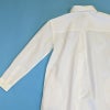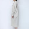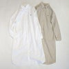 張りがあって、ナチュラルなしわ感が魅力のタイプライター生地を使用して、 ゆったり着れるロングワンピースに仕立てました。 フロントの第二釦の付け糸と釦ホールを配色にしてアクセントにしています。 シームポケットもあるので使い勝手抜群です。