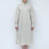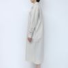 張りがあって、ナチュラルなしわ感が魅力のタイプライター生地を使用して、 ゆったり着れるロングワンピースに仕立てました。 フロントの第二釦の付け糸と釦ホールを配色にしてアクセントにしています。 シームポケットもあるので使い勝手抜群です。