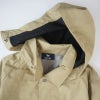 この素材は、特殊なフィルムを表地と裏地の間に挟み込んだ3レイヤー構造になっており、水蒸気は通し、雨や風は通しにくい素材になっています。
